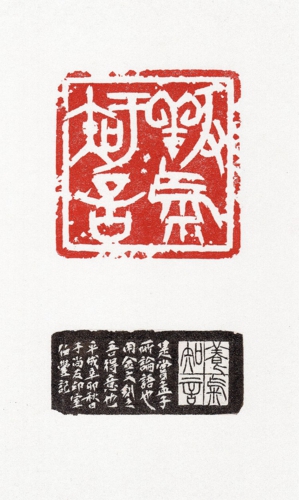 小篆の書体を用いた白文印。「吟」の字の「今」にあたる部分は、音が通じることから「金」を用いている。文字と界線との関連する部分に意匠を凝らし、全体の空間が締まるよう心掛けた。