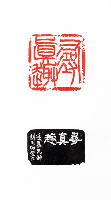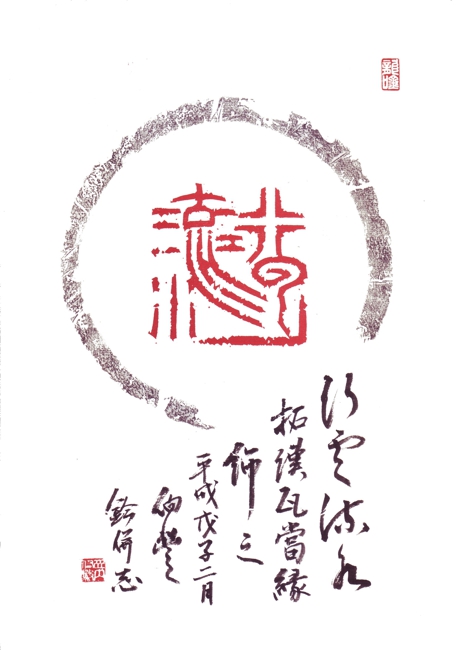「白を計りて黒を當つ」。書画篆刻の作品制作の上で、実際に書く(刻す)実線部分だけでなく、作品の空白部分も同様に意識して精神を通わせ作品を仕上げていく姿勢を表した語。