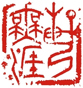 金文の書体を用い、文字がより大きく見えるように上辺と下辺を大きく欠いた。