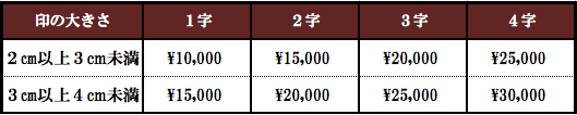※変形印の刻料は、縦寸(長い方のサイズ)を目安とします。